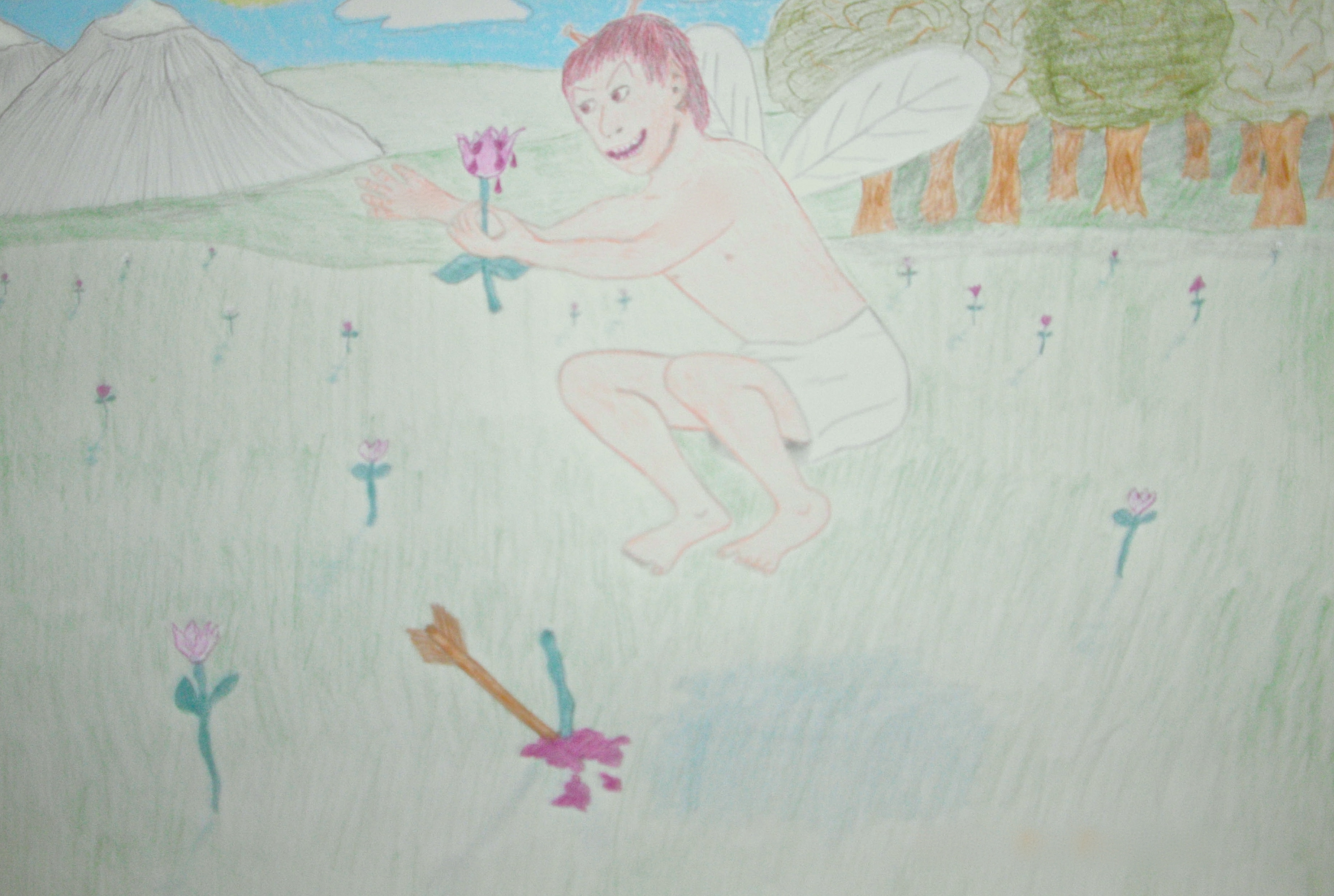Wanting revenge for this ‘injury’, Oberon commands Puck, his fairy servant, to go off and find a special flower that one of Cupid’s arrows was shot into. The arrow filled the flower with a potion, called ‘love in idleness’. When the ‘love juice’ of this flower is poured onto the eyelids of anyone sleeping, he or she, when waking, will fall in love with the first person…or animal…or thing…he or she sees. Puck flies away to find the flower.